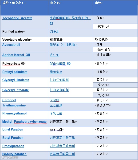 说到这个功效,我们就来看看他的成分吧!