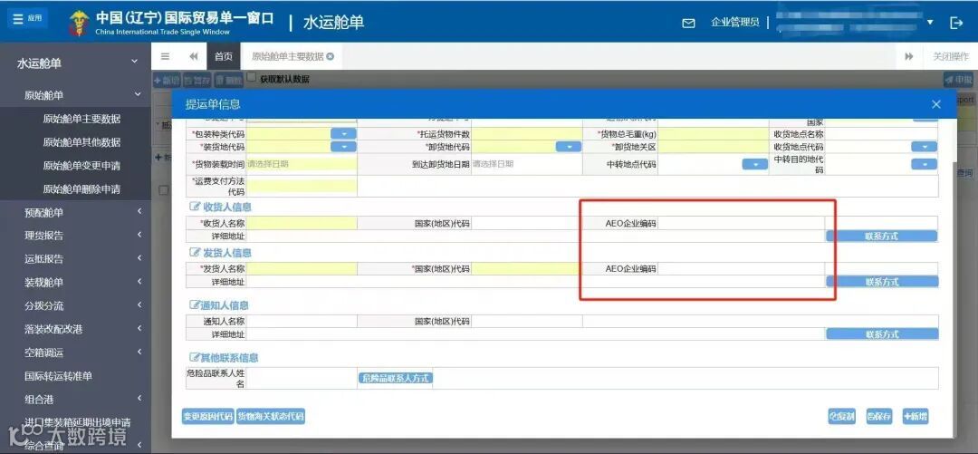 按照《海关总署关于明确“经认证的经营者”(AEO)企业编码填报规范的公告》(海关总署公告2018年第131号发布)要求,国内企业进出口时,需在舱单“收发货人AEO企业编码”栏目和报关单“境外收发货人”栏目中正确填写境外收发货人AEO企业编码(中国企业为失信企业的,无法享受互认便利措施)。