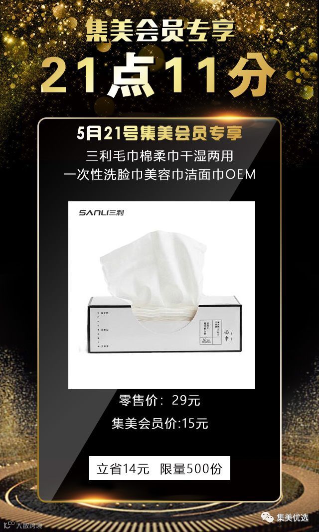 5月21日,21:11,三利毛巾棉柔巾干湿两用一次性洗脸巾美容巾洁面巾OEM,原价29元,建议零售价15元,限量500份,手慢无!!!