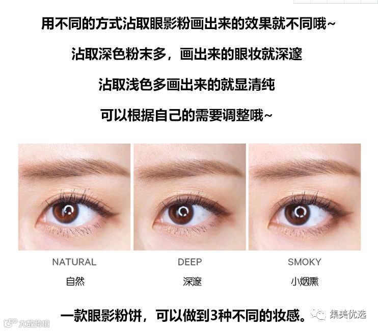【使用方法】只要轻扫眼皮,就可画出渐层大地色眼妆,你也可以依照自己的喜好,用扫子集中在深或浅的位置而做出不同的妆感,而效果也非常自