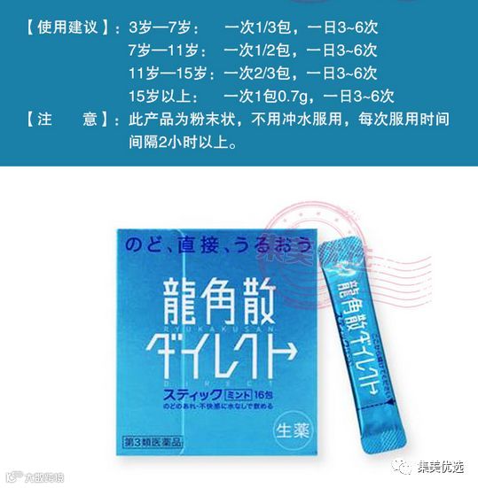 龙角散在日本可谓是家喻户晓,有200多年的历史,对嗓子不适,吸烟过多,感冒引起的喉咙肿痛,止咳化痰均有明显的缓和作用。味道也是超级棒,全部中草药成分,从3岁的小朋友到80岁的老人都可以服用。