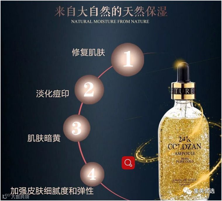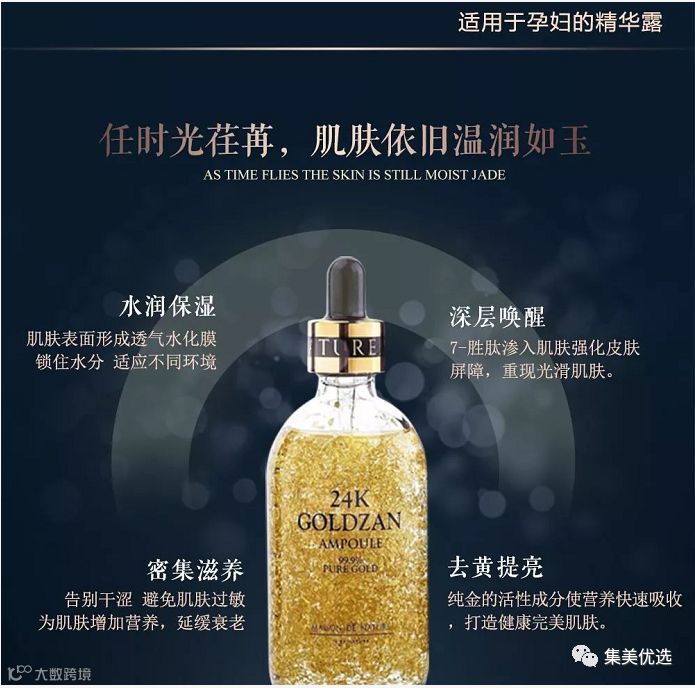 24k金黄金浓缩精华100ml~绝对要买‼️可以全效改善肌肤糟糕的状态,内含24k水溶金和高纯度玻尿酸,修复肌肤、淡化痘印、毛孔粗大、肌肤暗黄、缺水起皮,加强皮肤细腻度和弹性,双颊泛红和红血丝皮肤都适用。
