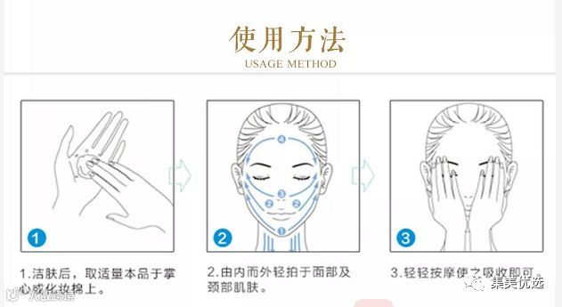 轻轻涂面部和颈部肌肤上轻拍吸收即可