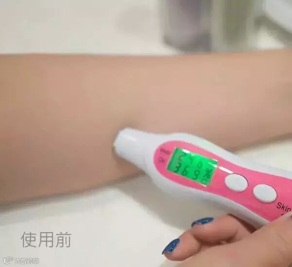 上图是兰芝隔离使用前,因为忙碌了一天,皮肤明显处于油脂分泌旺盛,含水量下架状态,含油率36.9% 含水率则只有24.6%了,处于水油不平衡状态。