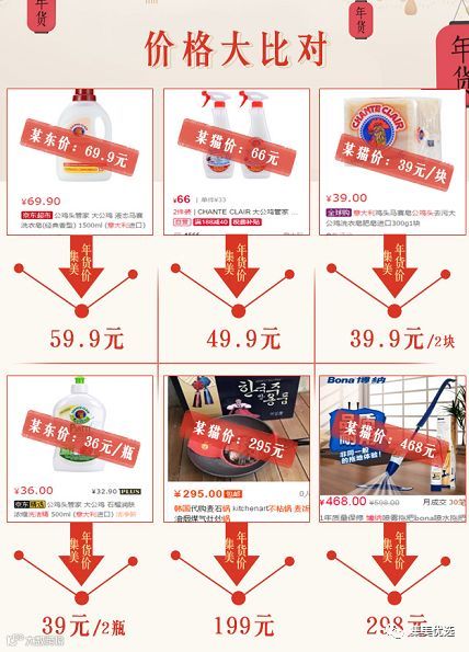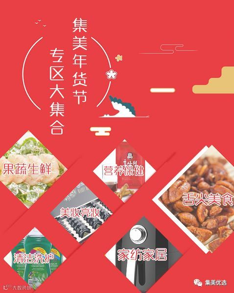 本次集美年货更是涵盖了6大专区:清洁洗护,食品,服装家纺,水果,保键品礼包,美妆