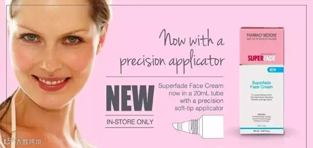 Superfade 是世界上最好的消除皮肤黄褐斑的产品,有效作用于脸部,手部,脖子以及身体其他部位,使用四周即可见效。除此之外,Superfade Cream还蕴涵维他命有效修复肌肤,并持续有效抵抗晒伤。