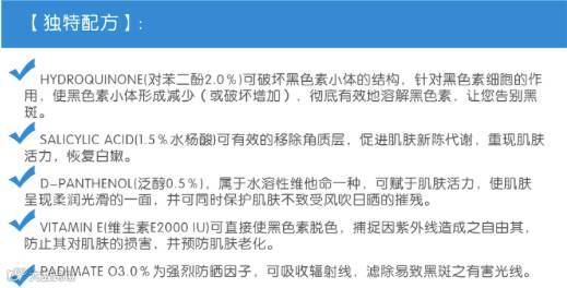 临床验证,6周内有效淡化脸部各类色素沉着,包括黄褐斑、老年斑及雀斑!并防止黑色素再生成~~~