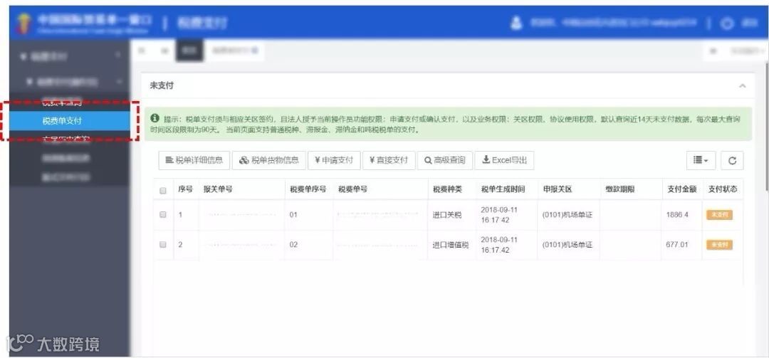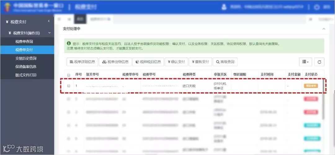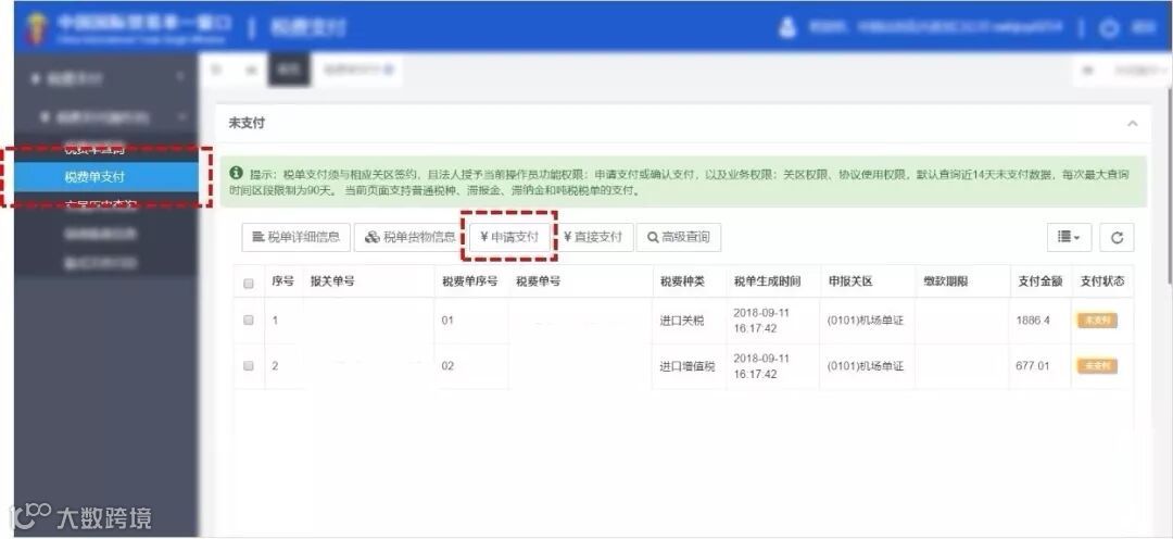 提示:这些操作与直接支付是一样的?别急,接下来还有步骤要操作。因为现在税单只是被提交了“申请”……