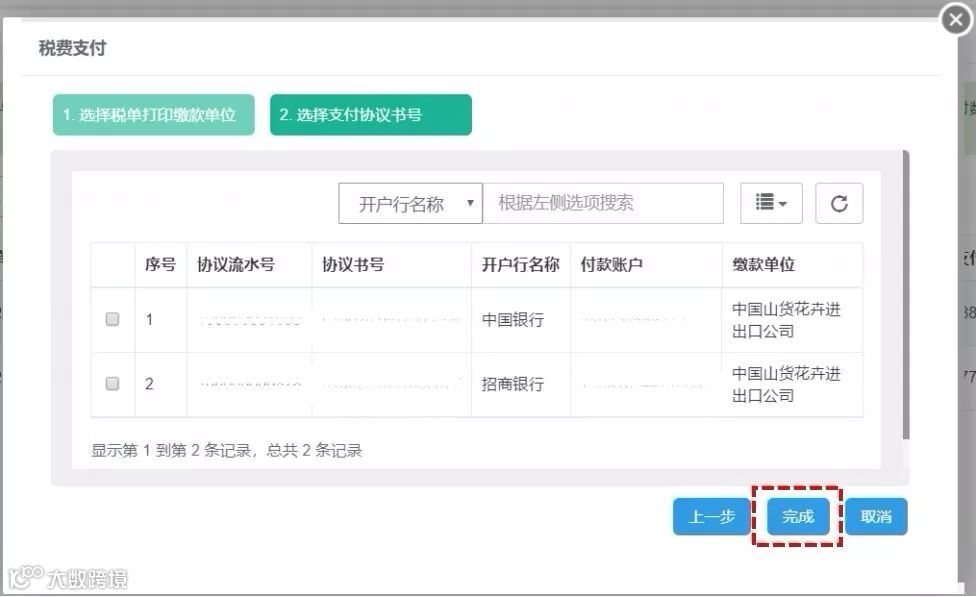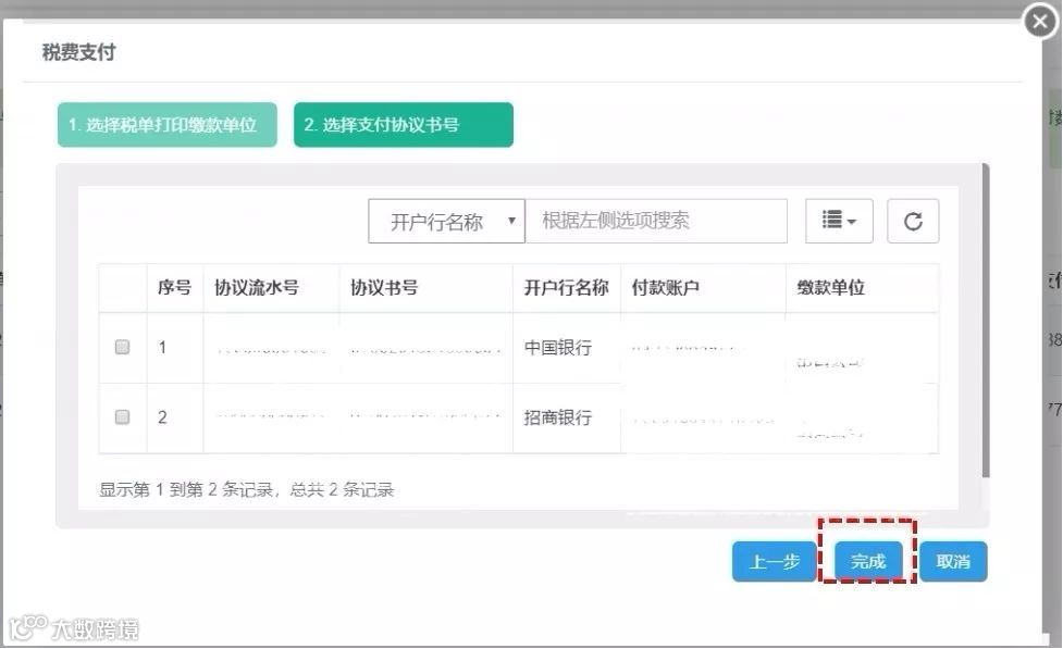 ▶勾选协议(不同开户银行的协议不同,请根据您的实际情况选择),点击