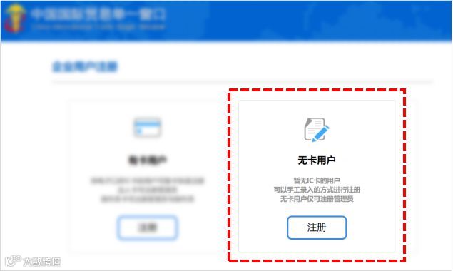 ▶在注册页面依次选择【企业用户注册——无卡用户】,点击
