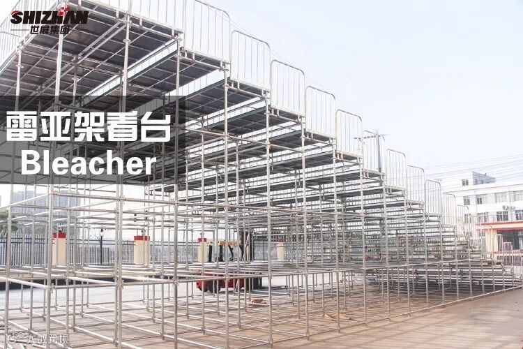 由于雷亚架的结构比较方便灵活,所以用途十分广泛,浇筑支撑、建筑、舞台背景、灯光架等领域都是它的“拿手好戏”,由于篇幅有限,今天就为大家介绍一下它的用途之一,看台。