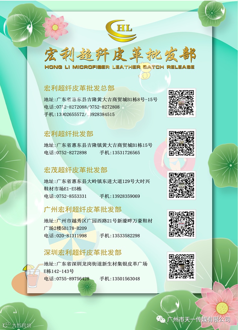 宏利超纤皮革有限公司成立于2000年2月,随着时间的发展公司的壮大,设立吉隆宏利为总部,位于享有“中国女鞋生产基地”的惠州市惠东县吉隆镇。主要经营批发、零售:皮革(PU)、超纤、等皮革材料,应用于鞋帽、箱包、沙发、服装、皮手套等皮革制品。产品涵全中国及世界各地,分别在深圳、广州、惠东、等地设立有销售点。自创立以来,以“保护动物是我们的使命、做好皮革是我们的的使命,做好皮革是我们的责任。”