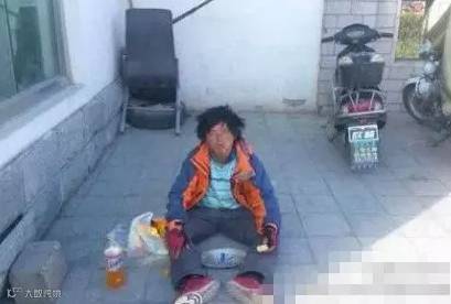 蹲在路边啃着馍,