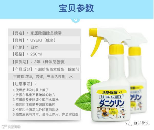 日本UYEKI除螨虫喷雾剂除螨剂杀螨虫喷剂床上杀菌250ml