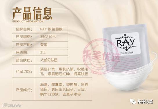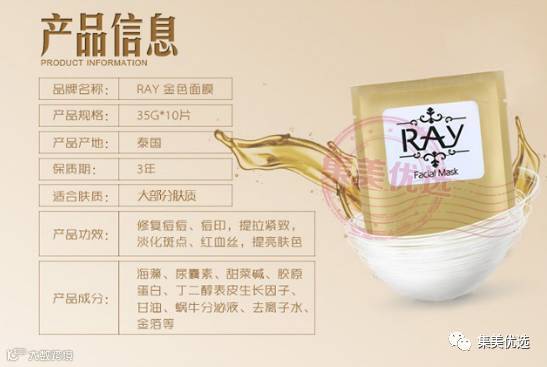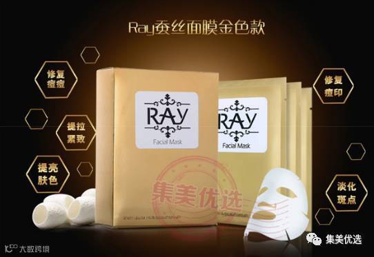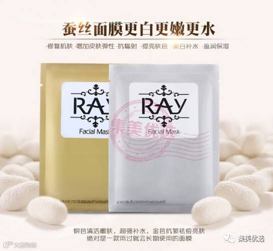 泰国RAY蚕丝面膜保湿补水亮肤收缩毛孔抗皱祛痘淡斑(金色、银色各一盒)