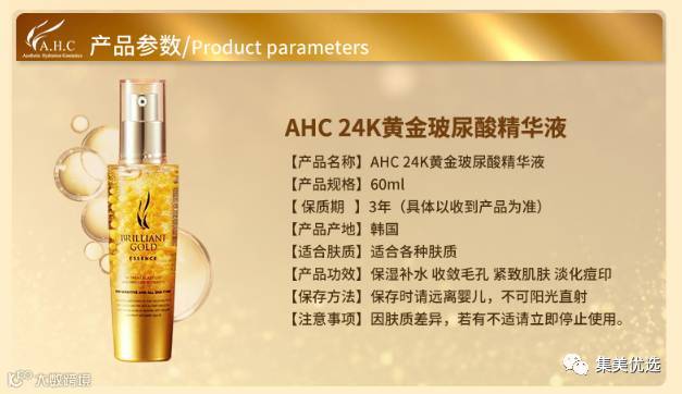 韩国AHC黄金蜗牛玻尿酸保湿补水美白紧致修复肌肤营养精华液 60ml