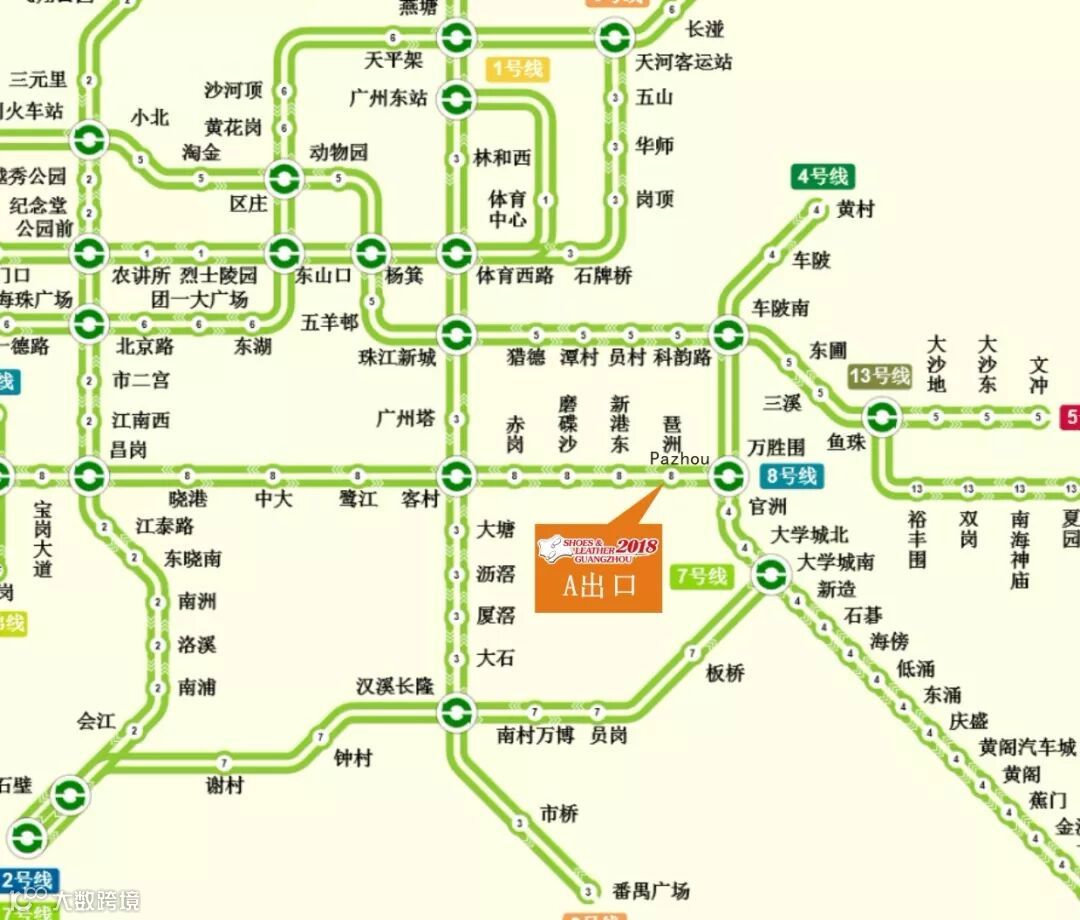 2、广州地铁 - 8号线,琶洲站,A出口。