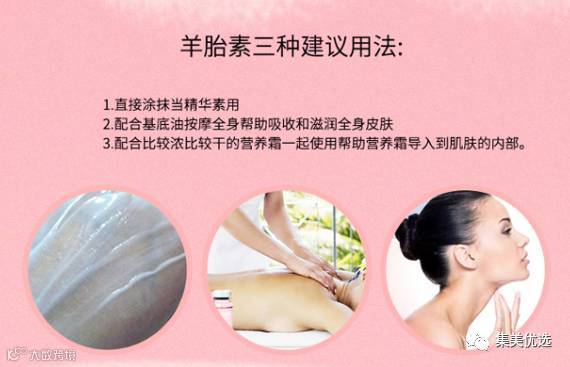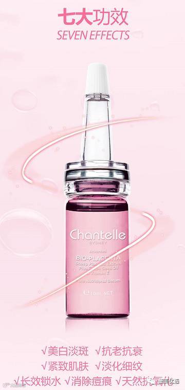 Chantelle香粉羊胎素原液使用于面部的100%羊胎素原液,像水一样的精华,几秒内完全吸收!加速有效成分的吸收,8秒渗透,有着淡淡的香味。提取澳洲天然葡萄籽,超强抗氧化能力,不油腻吸收快;添加维e成分,帮助细胞恢复活力, 加速新陈代谢,抵抗衰老和松弛,长效保湿,锁水,增强肌肤弹性,特别添加胶原蛋白,丰盈肌肤细胞,快速恢复细纹,完美修复皱纹。
