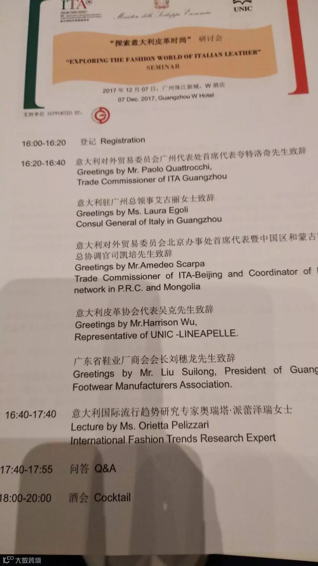 本次研讨会上,意大利对外贸易委员会广州代表处首席代表Paolo Quattrocchi先生的致欢迎辞再次肯定了意大利在时尚设计方面的领导地位,以及中意双方的积极贸易前景,尤其是在皮革行业。