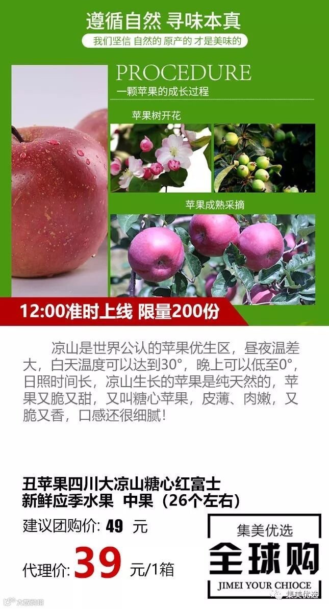 凉山是世界公认的苹果优生区,昼夜温差大,白天温度可以达到30°,晚上可以低至0°,日照时间长,凉山生长的苹果是纯天然的,苹果又脆又甜,又叫糖心苹果,皮薄、肉嫩,又脆又香,口感还很细腻!