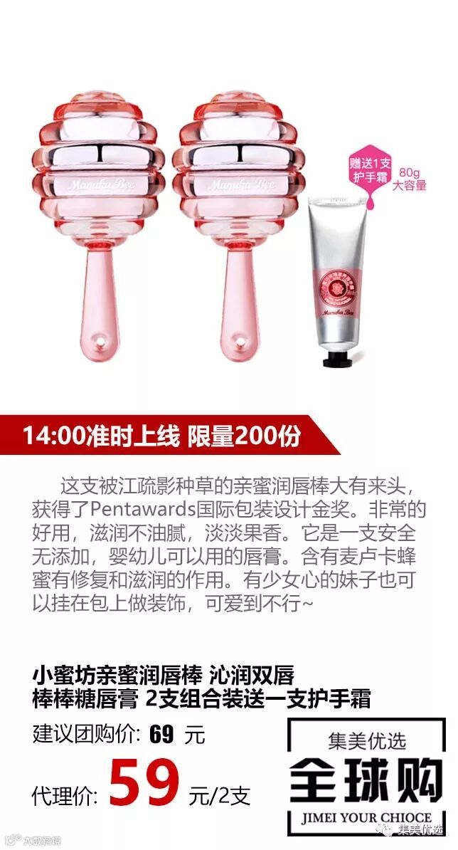 这支被江疏影种草的亲蜜润唇棒大有来头,获得了Pentawards国际包装设计金奖。非常的好用,滋润不油腻,淡淡果香。它是一支安全无添加,婴幼儿可以用的唇膏。含有麦卢卡蜂蜜有修复和滋润的作用。有少女心的妹子也可以挂在包上做装饰,可爱到不行~