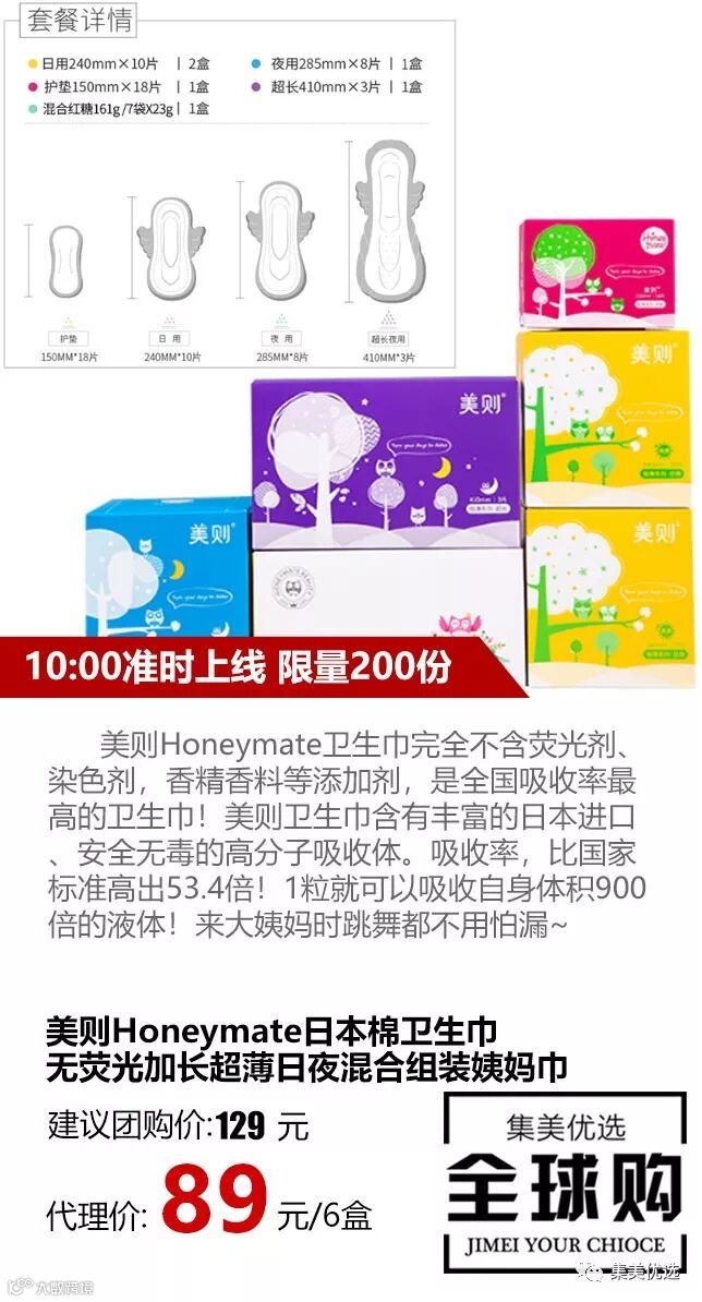 美则Honeymate卫生巾完全不含荧光剂、染色剂,香精香料等添加剂,是全国吸收率最高的卫生巾!美则卫生巾含有丰富的日本进口、安全无毒的高分子吸收体。吸收率,比国家标准高出53.4倍!1粒就可以吸收自身体积900倍的液体!来大姨妈时跳舞都不用怕漏~