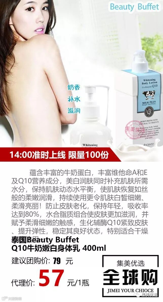 泰国Beauty Buffet Q10牛奶嫩白身体乳 400ml