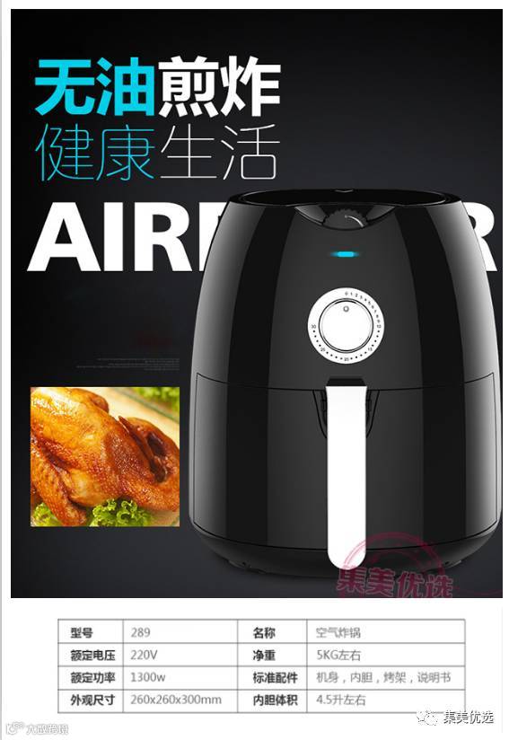 德国技术三代空气炸锅 家用智能无油烟大容量4.5L 薯条机电炸锅