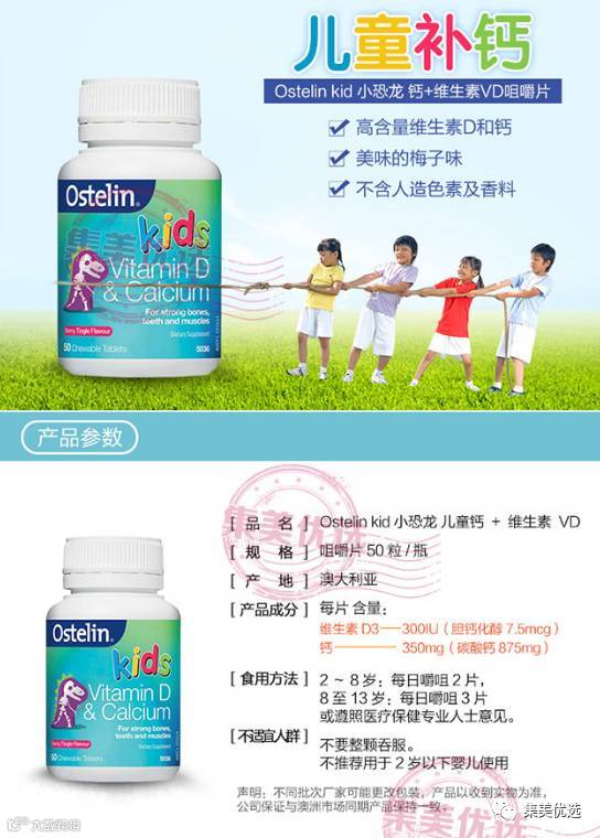澳洲Ostelin Kids儿童钙片+VD维咀嚼片 小恐龙钙 50粒
