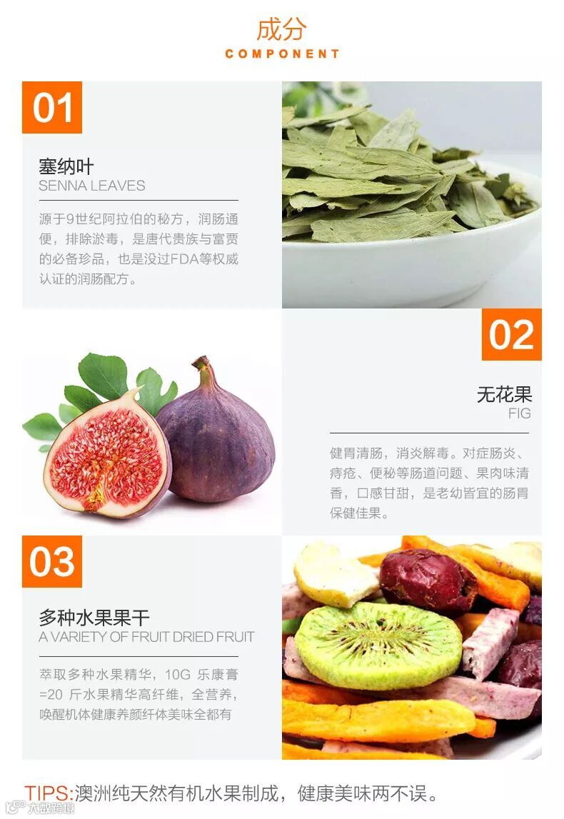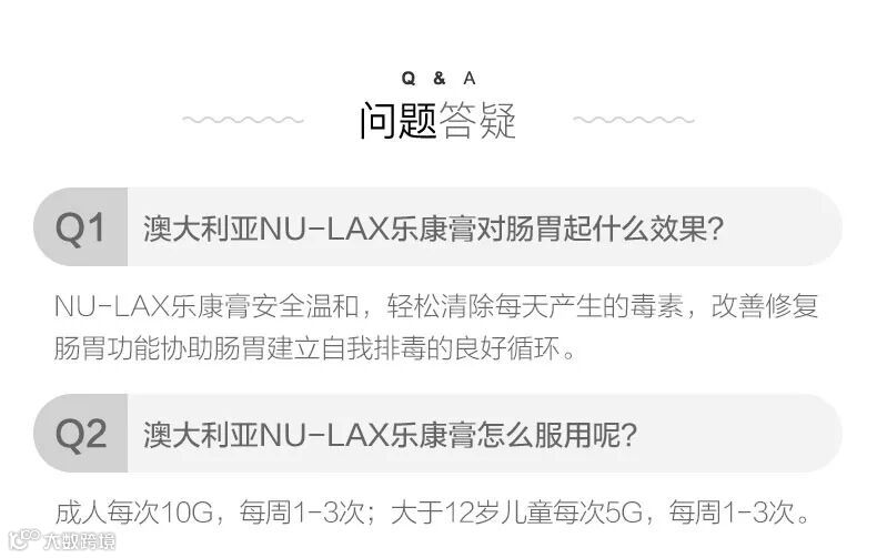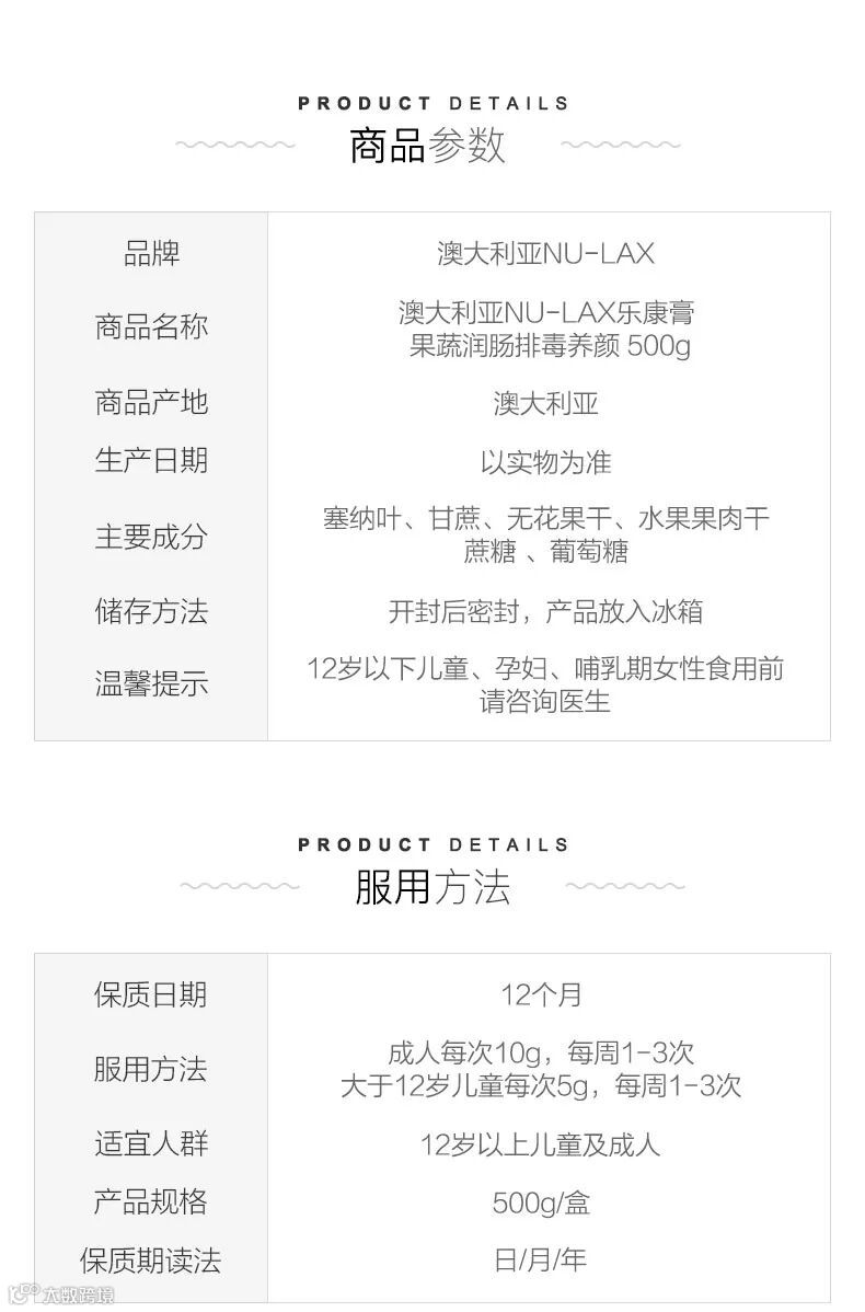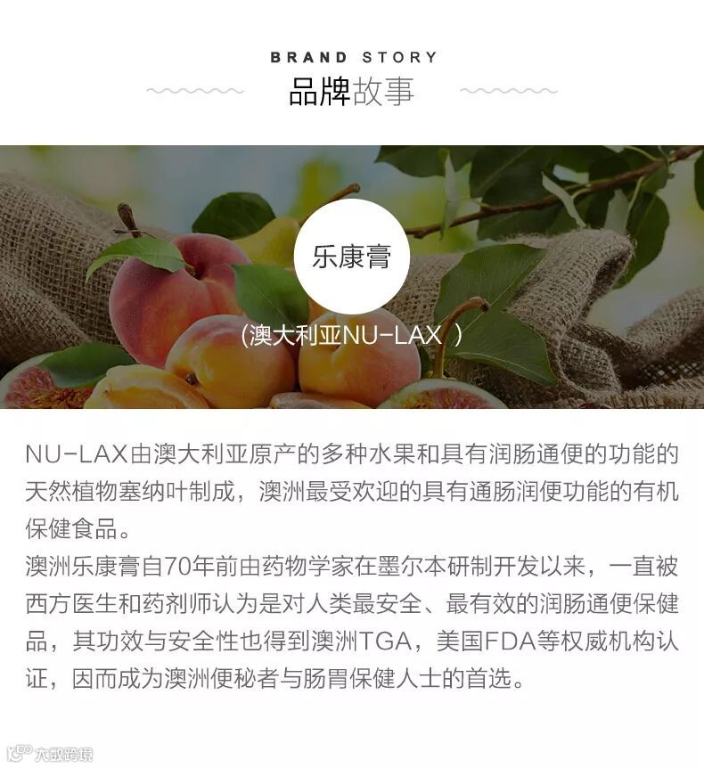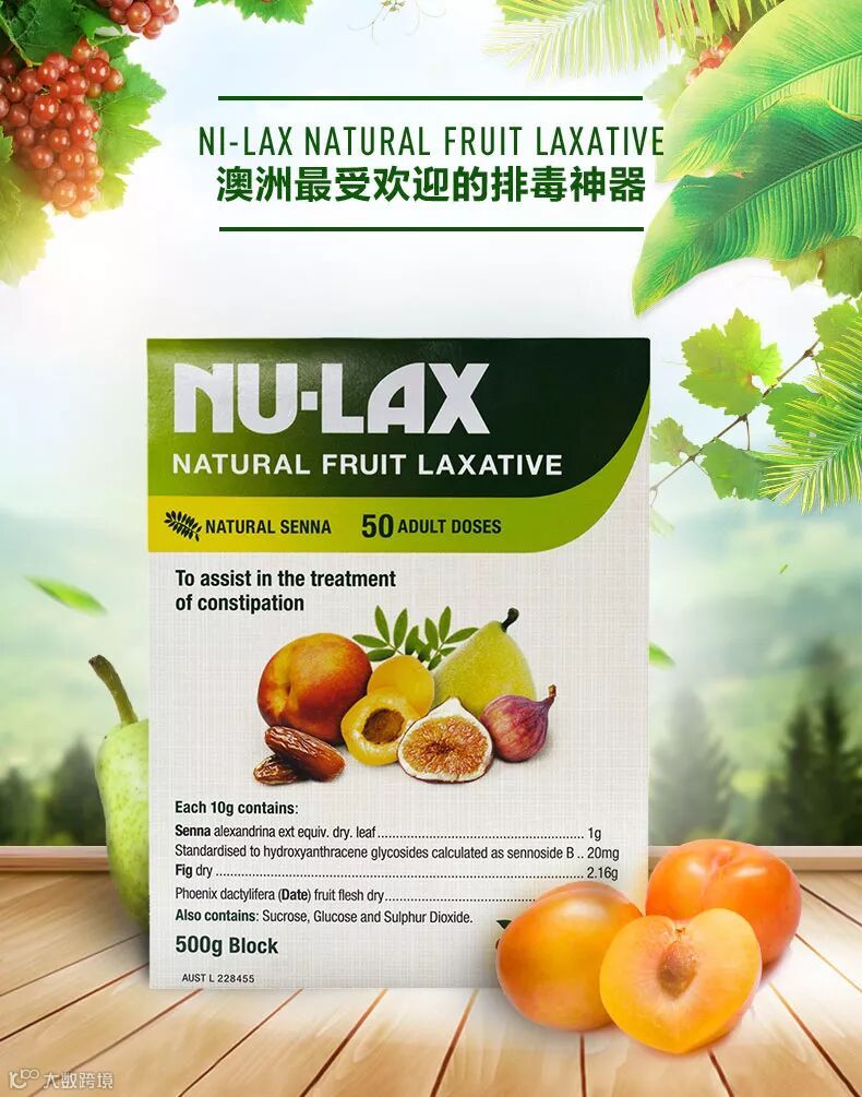 Nu-Lax 乐康膏 天然果蔬排毒润肠通便是从澳大利亚原装进口的具有润肠通便功能的保健食品,其主要成分为由澳大利亚原产的多种混合水果(无花果及大枣等)和具有润肠排便功能的天然植物番泻叶混合而成,褐绿色,膏状,微甜,口感好,所有成分均100%纯天然,不含任何人工添加剂和化学物质。专门针对千皱百褶深藏的肠垢,从“润”入手,全面疏通;以“调”为本,确保畅通;以“养”促调,长期起效。完全以口服净肠达到“大肠水疗法”的效果,既安全又方便。