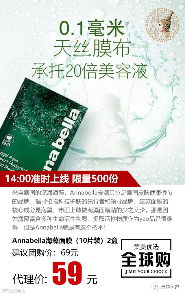 护肤达人林允推荐,进口二代天丝面膜布厚度0.1mm,可以吸取足足30g精华液,精华液肤感浓稠。敷完清爽,极易吸收,这是核心专利技术。精华液富含深海藻、螺旋藻、小球藻、葡聚糖、玻尿酸等。补充水分,收缩毛孔,促进营养吸收。消炎舒缓,敏感肌肤也不怕,每晚一片刚刚好~