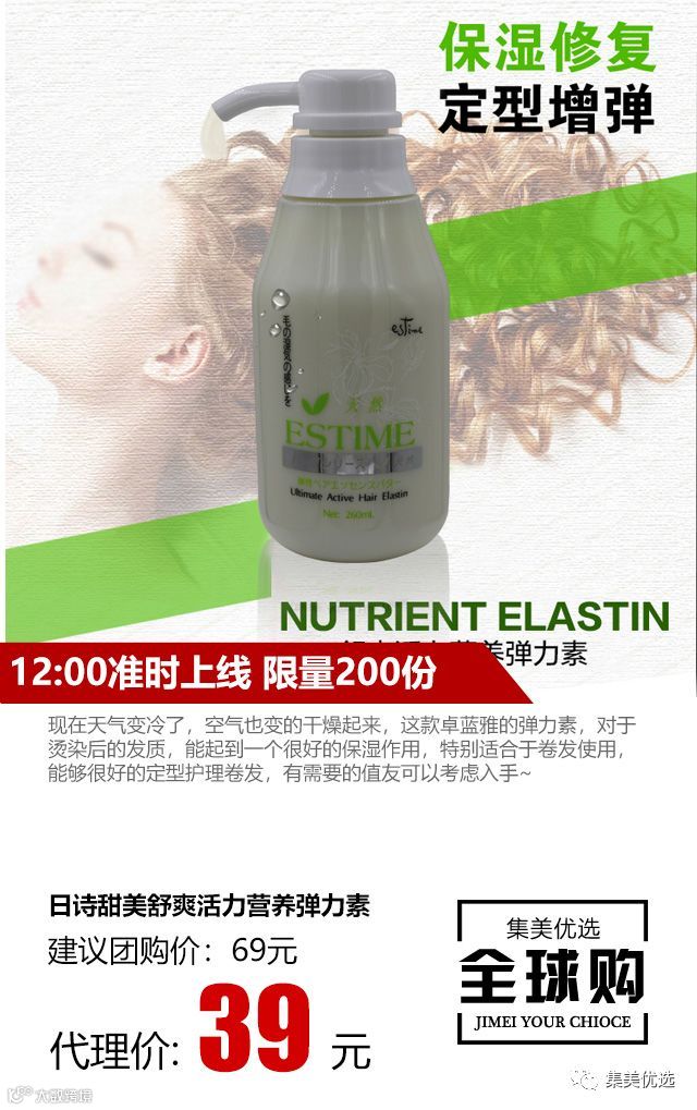 弹力素评价之王首推日诗甜美! 260ml超大量,立体丰盈弹力素在提升卷度的还兼顾蓬松感。让你告别扁塌、无精打采的卷发~半透明的乳液质地还可以缓解烫发后干枯、断发的烦人问题哦! 湿发的时候,吹干后睡塌的卷发马上回来了,一点也不黏腻。抹多了不会出现硬硬油油的情况,卷发蓬松又自然~