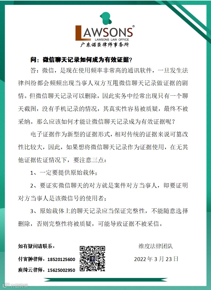 电子证据作为新型的证据形式,相对传统的证据来说可篡改性比较大,因此,如果想将微信聊天记录作为证据使用,在无其他证据佐证情况下,要注意三点: