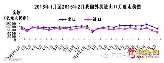 据海关统计,2015年前2个月,我国进出口总值3.79万亿元人民币,比去年同期(下同)下降2%。其中,出口2.26万亿元,增长15.3%;进口1.53万亿元,下降19.9%;贸易顺差7374亿元,扩大11.6倍。