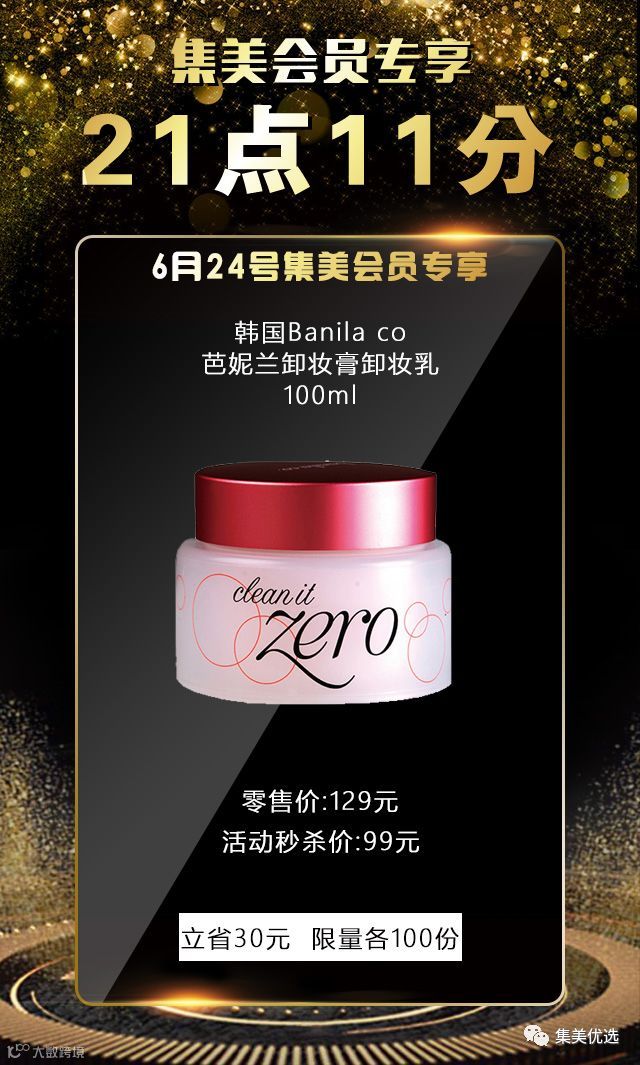 6月24日,21:11,韩国Banila co.芭妮兰卸妆膏卸妆乳 100ml,原价129元,活动秒杀价99元,限量100份,手慢无!!!