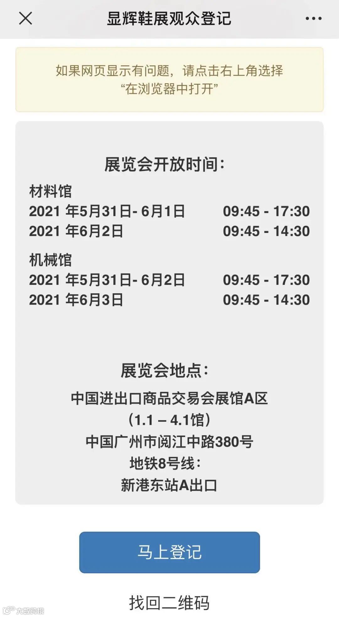 现场办证观众:请扫描现场微信二维码办证,带上身份证、2张名片并在观众登记柜台换取纸质参观证。