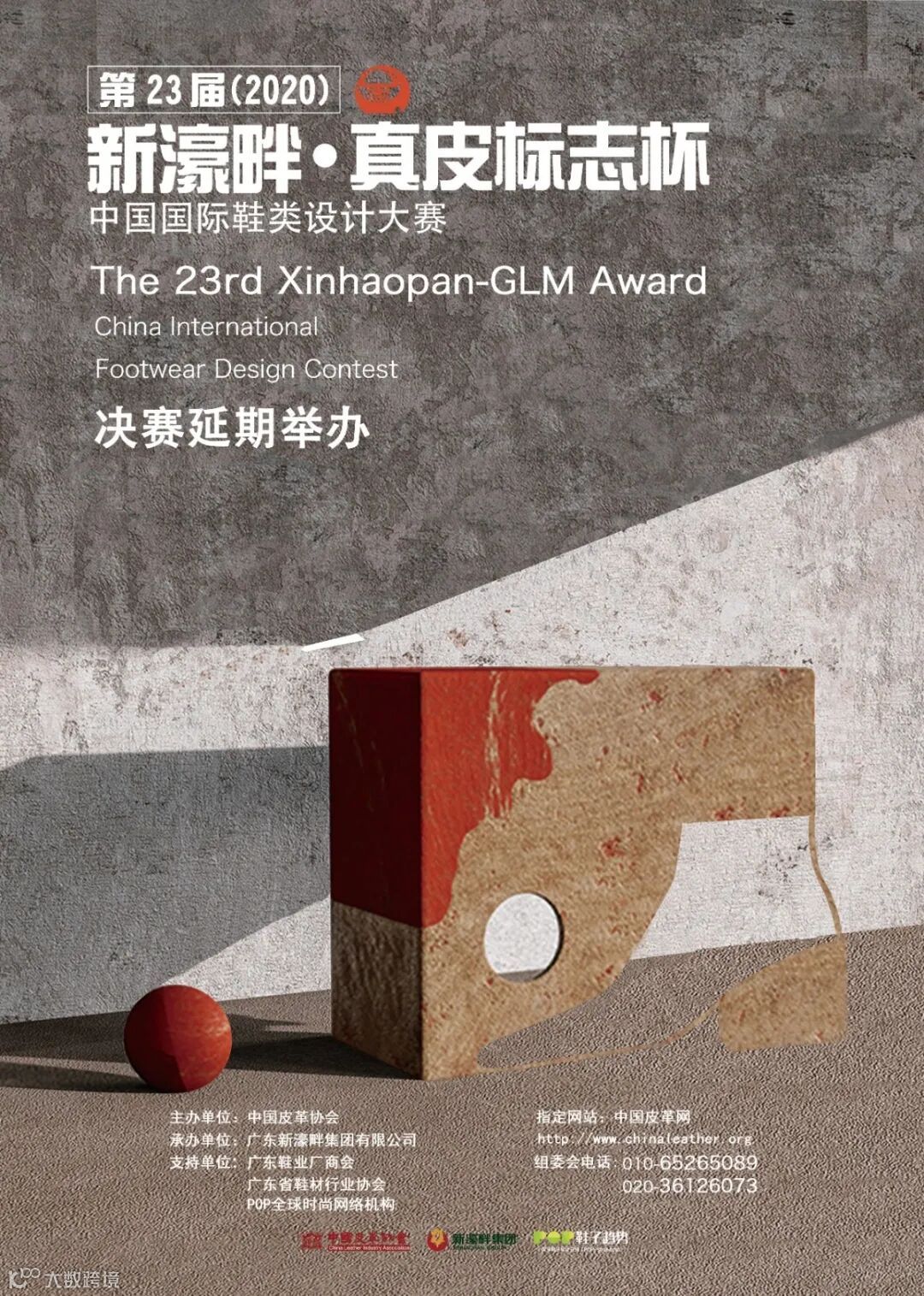 由中国皮革协会主办,广东新濠畔集团有限公司承办的第二十三届(2020)“新濠畔·真皮标志杯”中国国际鞋类设计大赛决赛(以下简称“决赛”),按大赛文件规定,决赛实物作品提交时间原定于 2020年4月20日截止。受新冠疫情影响,为配合做好新冠疫情防控工作,各企业和院校延迟复工和开学,导致参赛选手无法按时制作完成参赛实物作品,经广泛征求各参赛企业、院校意见,大赛组委会决定决赛实物作品提交截止时间调整至 2020 年 8 月 20 日,由此给大家带来的不便,敬请谅解!