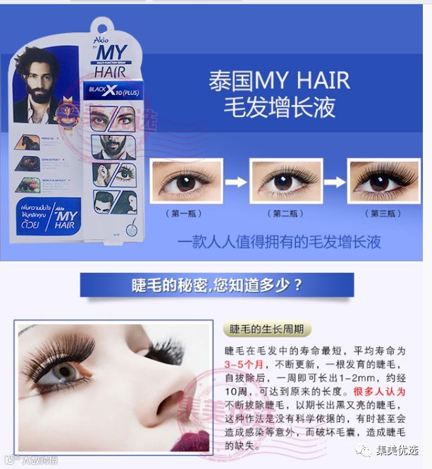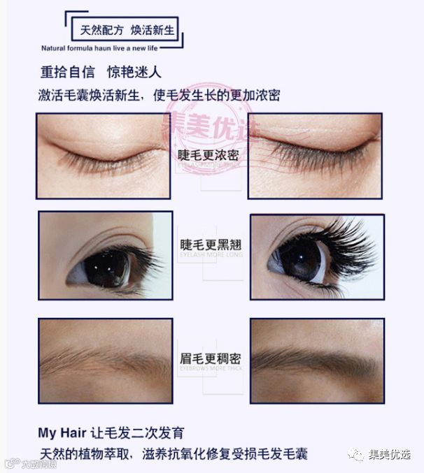 毛发增长液,My Hair最关键是纯天然的提取物不会对有副作用,不仅仅是睫毛可以用,眉毛,头发,胡子,胸毛,腿毛,只要有毛囊的地方都可以用,植物的清香味道,不刺激皮肤, 激活唤醒毛囊组织,真的有效!14ml至少可以用1-2个月了