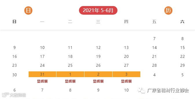 由显辉国际展览有限公司主办「显辉广州国际鞋类、皮革及工业设备展览会」迈进第30周年,作为全球鞋业和皮革业的一份子继续努力服务业界。展会将于2021年5月31日至6月3日,迁至中国进出口商品交易会展馆A区(1.1馆- 4.1馆)隆重举行,展馆重新布局,四馆连通无间隔场地更方便买家采购。同时为更好地满足全球鞋类和皮革行业的专业观众和参展商的需求,「显辉广州国际鞋类、皮革及工业设备展览会」将在2021年调整展览日期,材料馆(3天)和机械馆(4天),专业观众将有多一天的时间参观机械馆和采购合适的机械设备、配件。