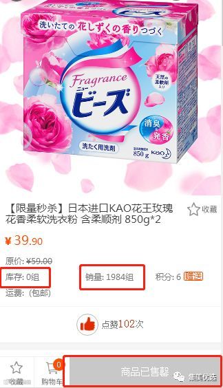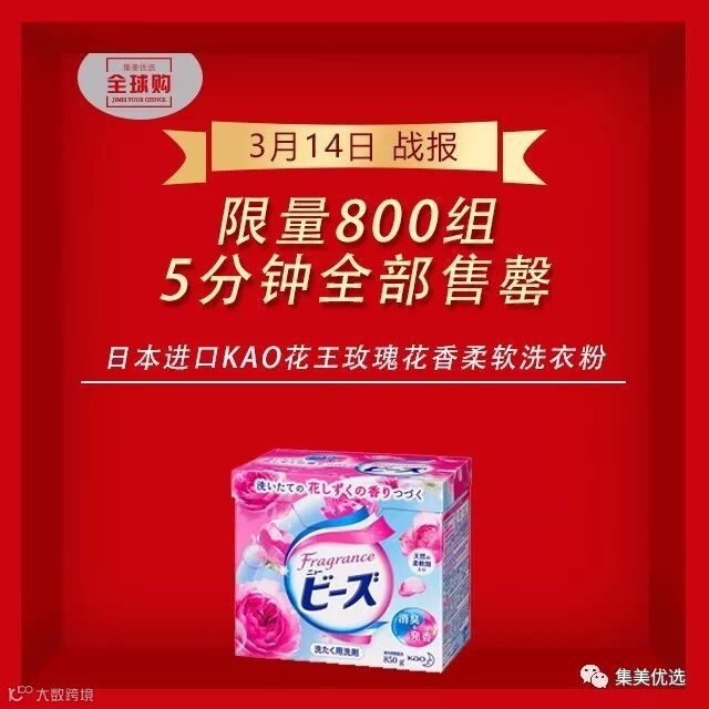 KAO花王玫瑰花香柔软洗衣粉850g含柔顺剂*2