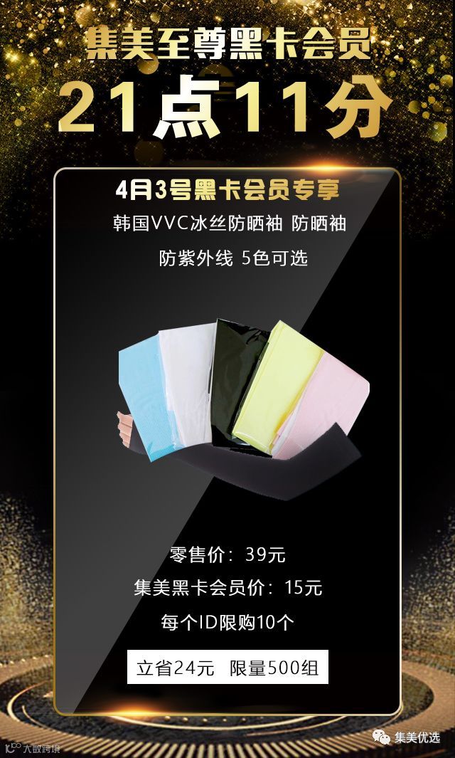 4月3日,21:11,在集美会员专享,只需要15元就可以买到正品韩国VVC冰丝防晒袖 防晒袖 防紫外线 5色可选,立省23元,限量500份,手慢无!!!
