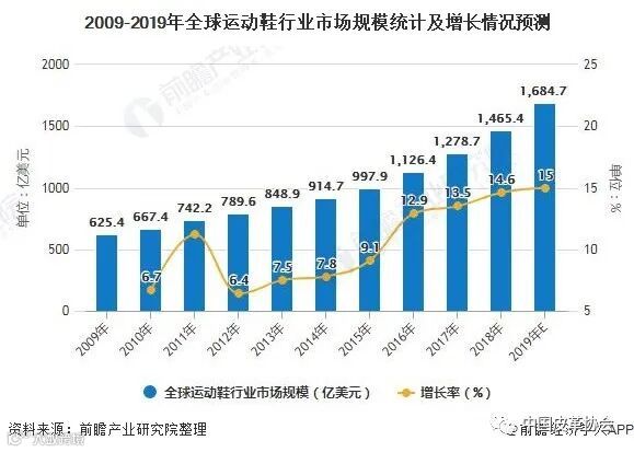 1、2019年全球运动鞋行业市场规模将近1700亿美元