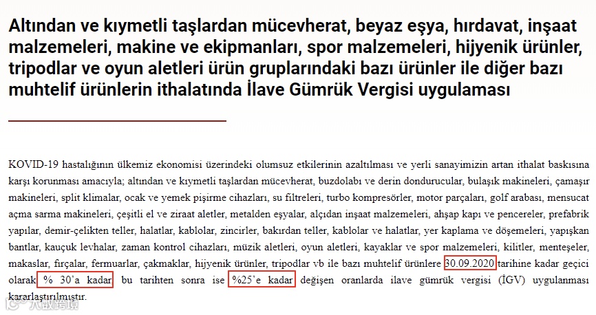而具体对哪些产品征收多少关税,土耳其商务局给出了官方文件。