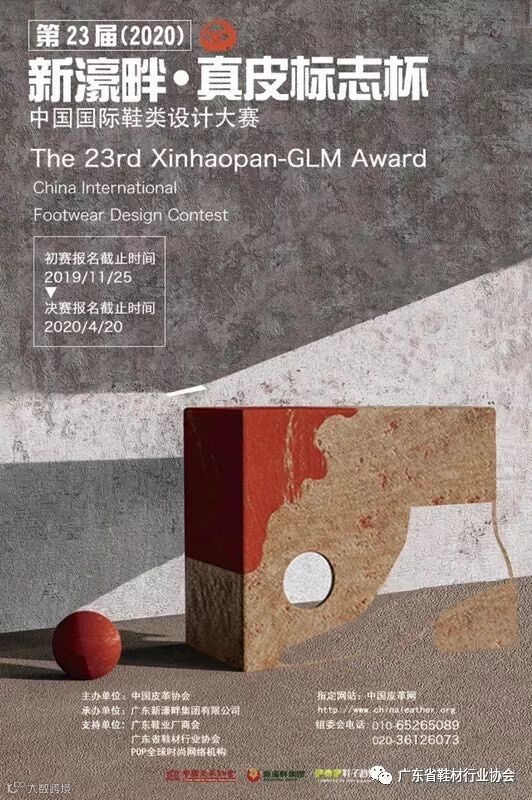 现在,由中国皮革协会主办,广东新濠畔集团有限公司承办第二十三届(2020)“新濠畔·真皮标志杯”中国国际鞋类设计大赛报名开启啦。
