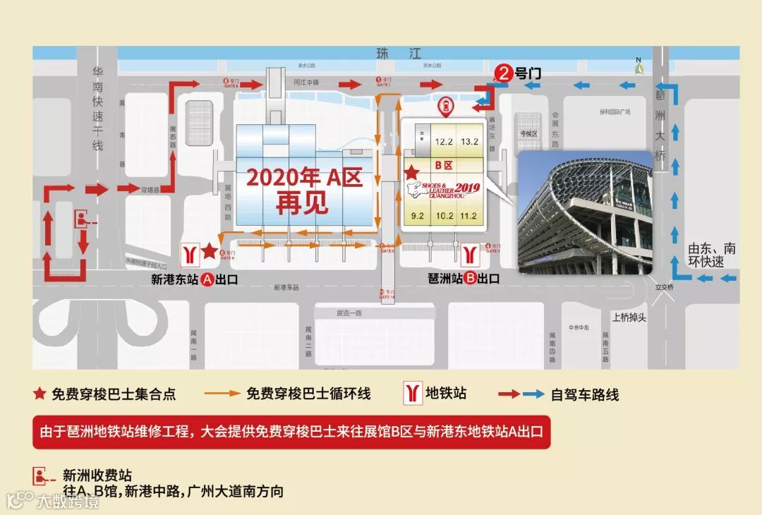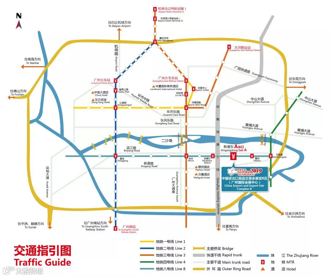 3号线(体育西路方向)至体育西路站→换乘3号线(番禺广场方向)至客村站→再换乘8号线(万胜围方向)至新港东站A出口(免费专车接送)