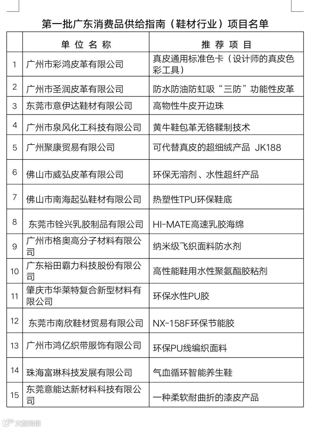 经广东省鞋材行业协会推选评审、广东省工业和信息化厅公示,认定广州、东莞、佛山、肇庆等地15家企业的15项产品为2018广东鞋材行业新产品新技术,入选省工信厅《广东消费品供给指南》(第一批)。