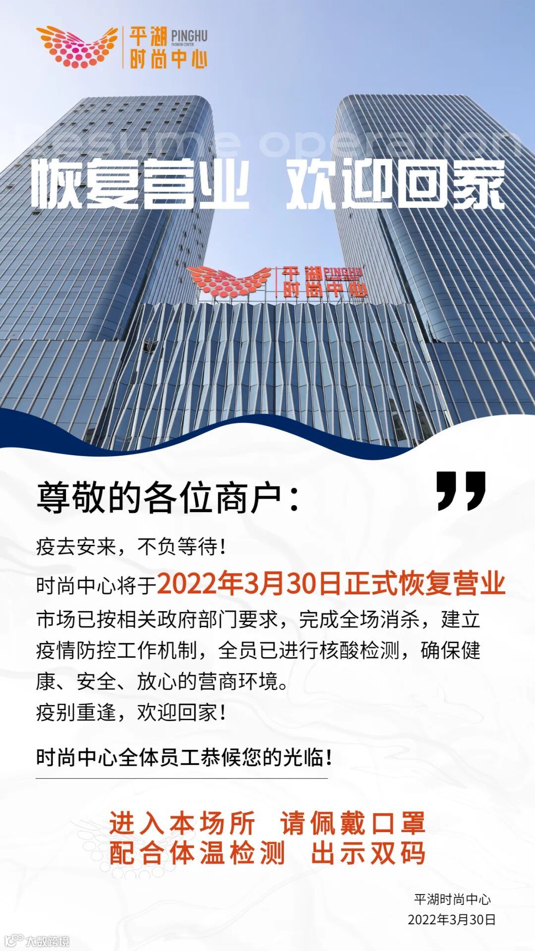 感谢您的支持和理解,时尚中心与您一同共克时艰,祝福平安健康!