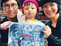 现场为观众在皮革上绘画卡通人像