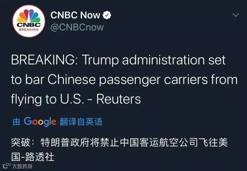 据外媒获悉,美国交通部6月3日发布命令,宣布将从6月16日起暂停所有中国航空公司执飞的中美定期客运航班,以向中国施压要求中方允许美国航司恢复赴华航班。