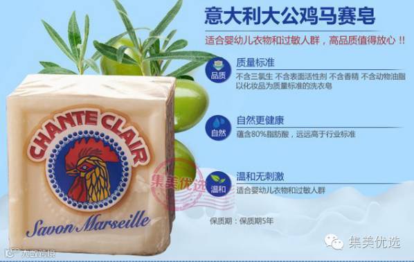 推荐理由:CHANTE CLAIR马赛洗衣皂萃取多种珍贵原料精制而成,富含脂肪酸,不含色素和致敏成分,配方天然,洗护温和,特别适合用来清洗婴儿和易过敏人群的衣物。其始终沿用马赛皂百余年的方形设计,拥有更长的使用寿命,取用时也更为便捷。固体马赛皂泡沫丰富、去污迅速,是手洗衣物最理想的选择。